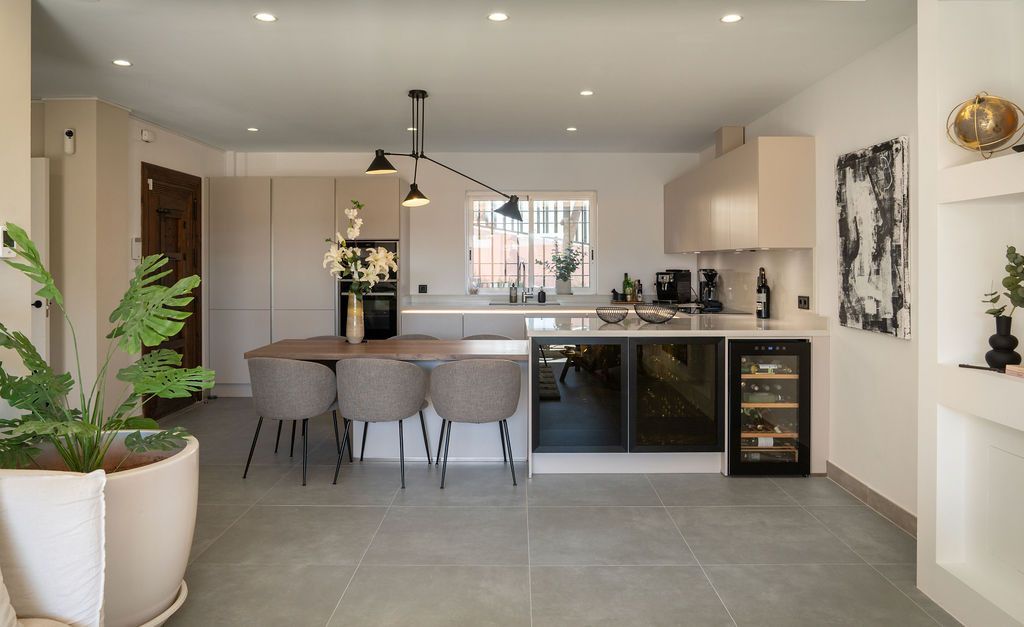 Această casă de oraș renovată frumos, cu 4 dormitoare, este situată într-o comunitate privată, liniștită și sigură, cu acces controlat, în inima Nueva Andalucía. Proiectată într-un stil scandinav rafinat și sobru, casa oferă un echilibru perfect între confortul modern și eleganța atemporală.