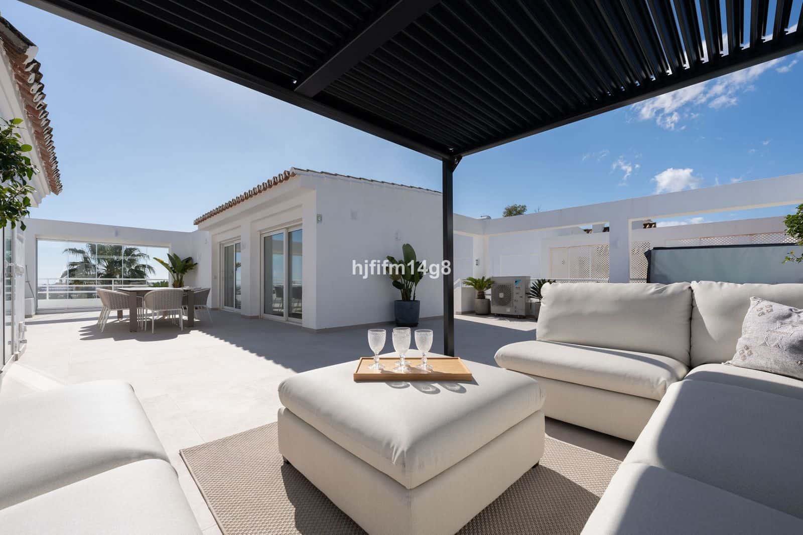 Dar punctul culminant te așteaptă deasupra. Urcă scările pentru a descoperi terasa de pe acoperiș, un loc impresionant conceput pentru relaxare și divertisment de maximă calitate. Aici vei găsi un jacuzzi, o zonă de lounge elegantă, o masă de dining și un grătar, oferind cadrul perfect pentru a îmbrățișa viața mediteraneană.