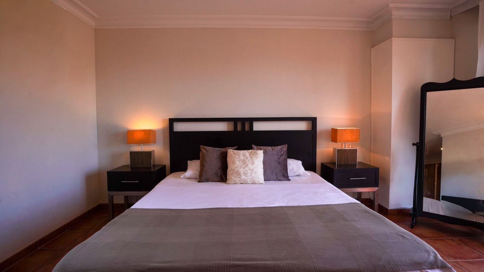 Vila este gândită cu atenție pe trei niveluri. La parter, veți găsi un studio privat pentru oaspeți cu acces direct la piscină și o terasă însorită — ideal pentru vizitatori sau flexibilitate în închiriere. Etajul întâi dispune de o bucătărie modernă complet utilată, un living și o zonă de dining luminoase, și un dormitor confortabil cu baie. Etajul al doilea oferă două dormitoare spațioase, fiecare cu propria baie, asigurând intimitate și confort pentru toți.