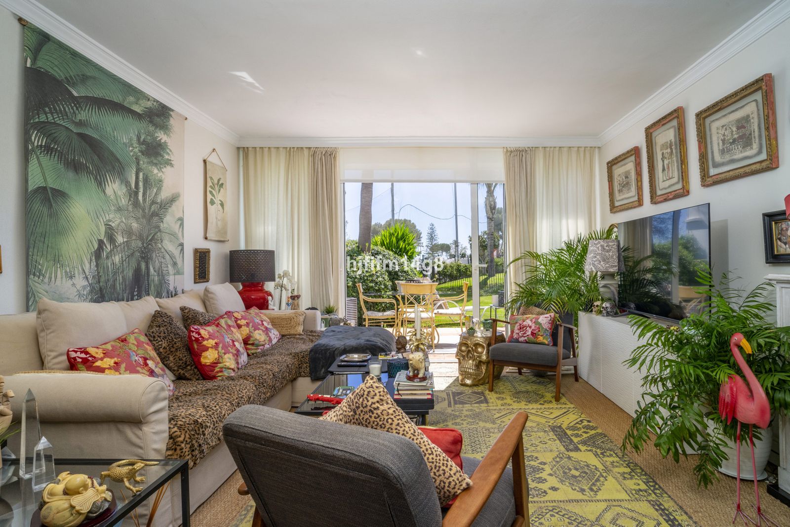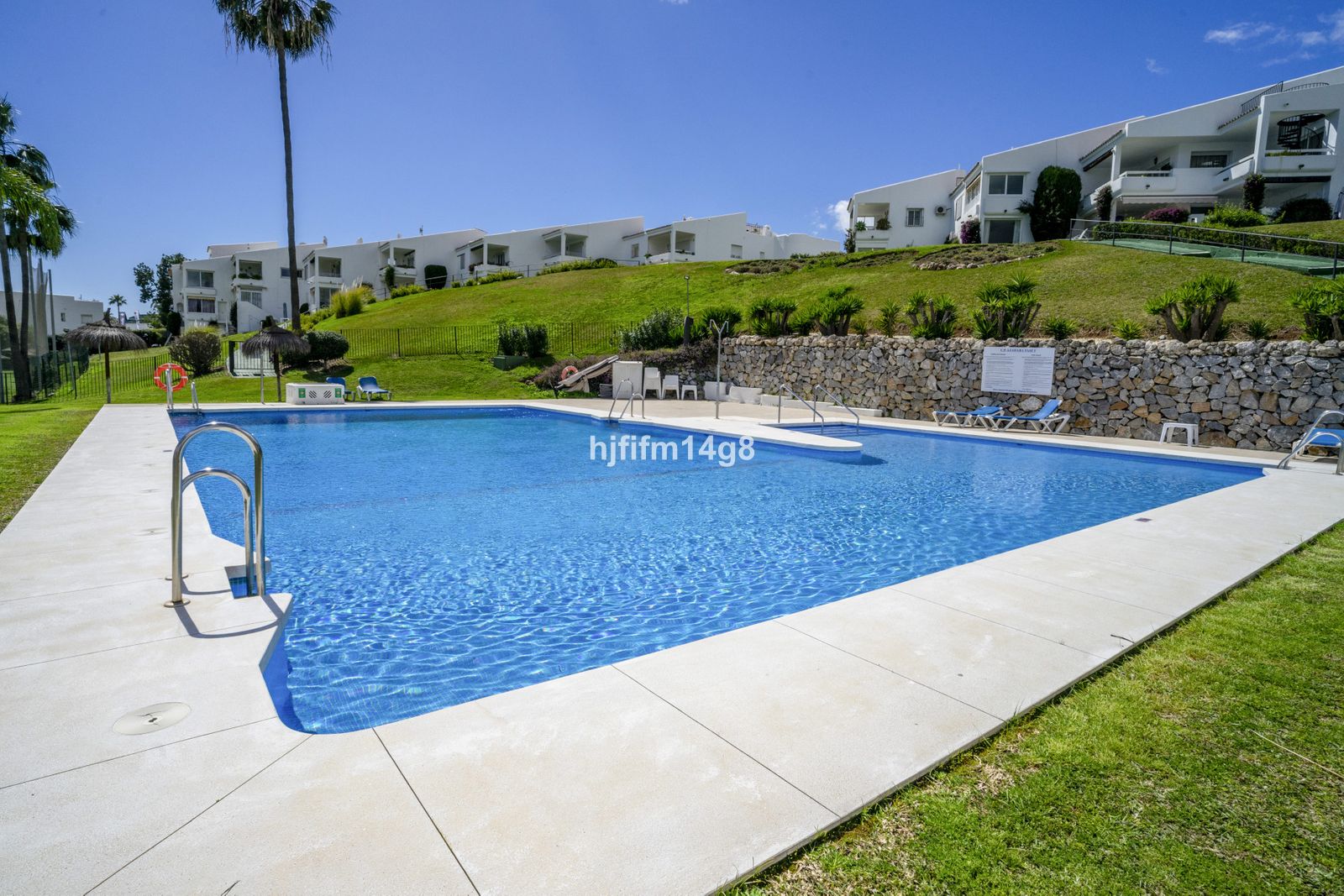 Situated on the ground floor, the property enjoys direct access to beautifully maintained gardens and a stunning swimming pool, creating a seamless connection between indoor and outdoor living. Facing south to southwest, the apartment benefits from natural light throughout the day and offers spectacular views of the surroundings.