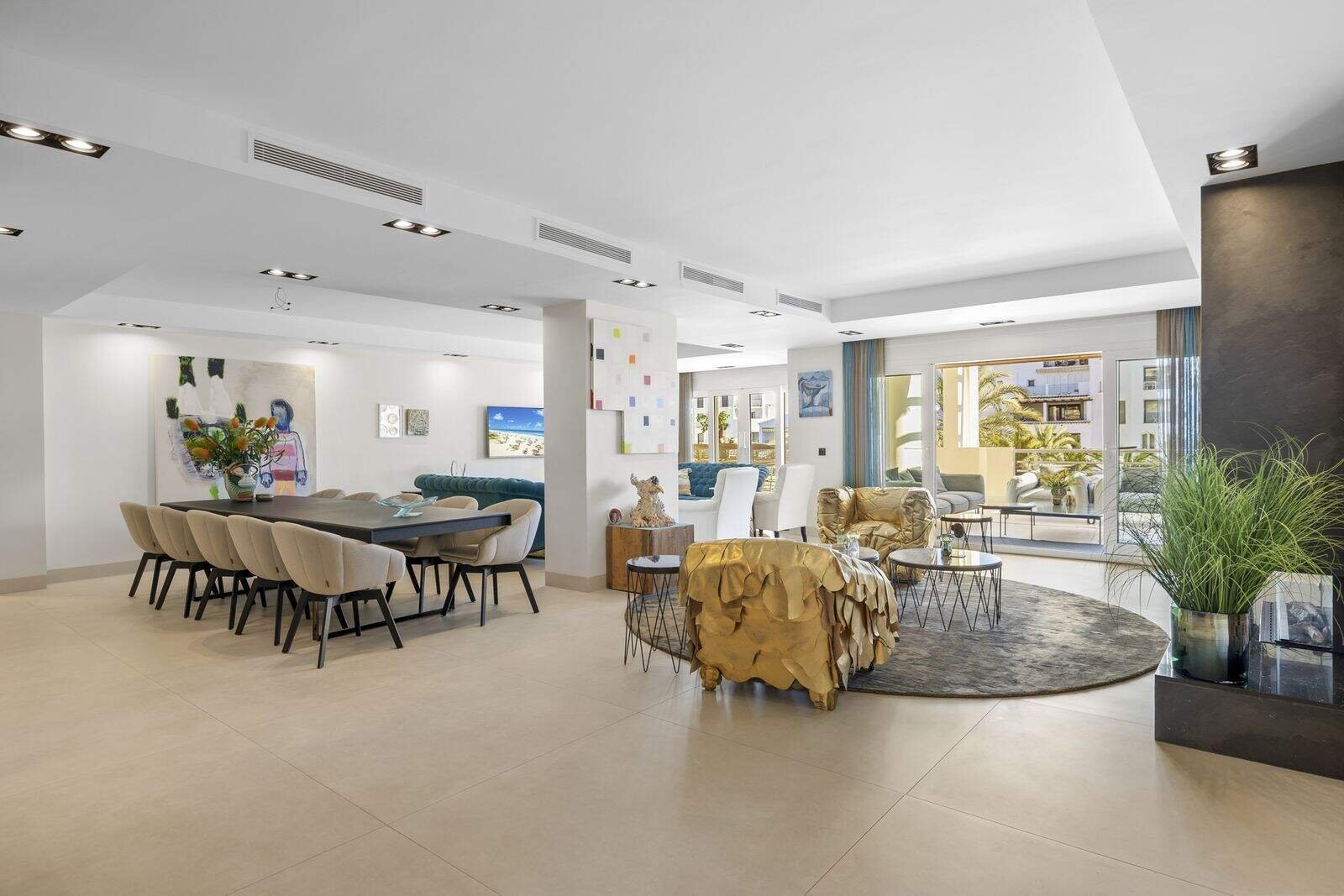 Descoperiți acest apartament de lux complet renovat de vânzare în Playas del Duque, unul dintre cele mai căutate complexe de pe plajă din Puerto Banús, Marbella.