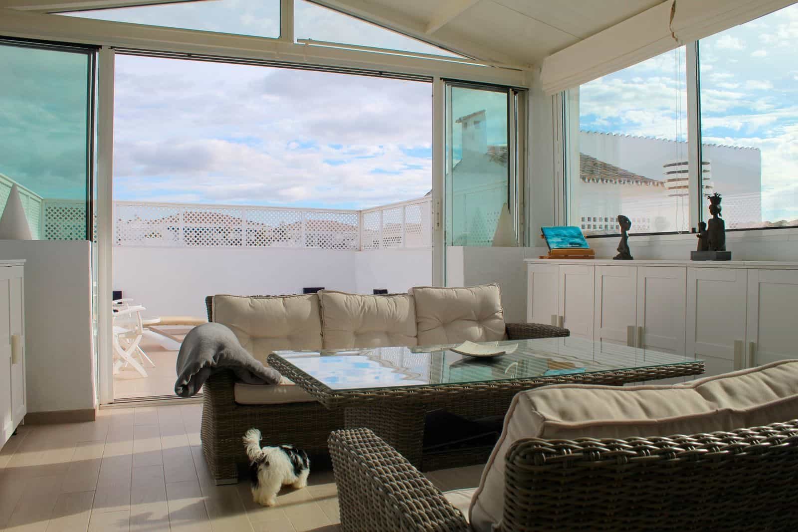 Fantastic penthouse apartment completely renovated in the well-known private complex Jardines del Puerto, on the second line of Puerto Banus, so it is within walking distance to the beach, amenities, and the marina. This property has 208 m2 built and 55 m2 of terrace with partial sea views. Bright and sunny rooms. It has 1 underground parking space, and the complex has a beautiful garden with 4 swimming pools and a tennis court.