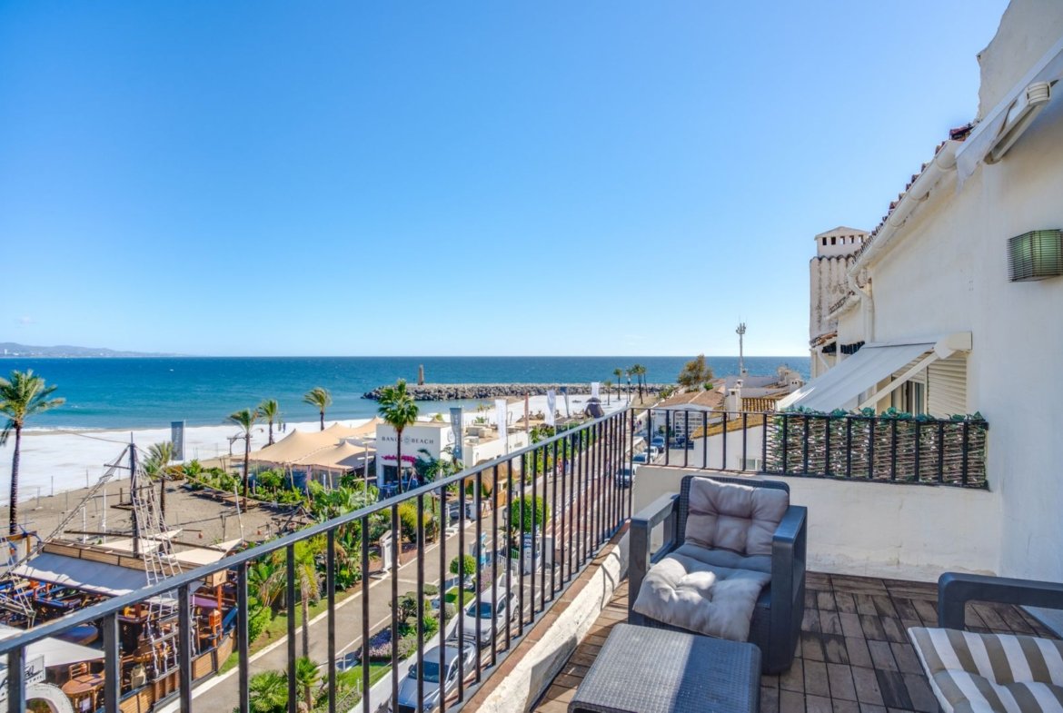 Penthouse frumos pe plajă, cu vedere la mare și la muntele La Concha, situat într-o comunitate închisă în inima Puerto Banús. La doar câțiva pași de plajă, restaurante, magazine și toate facilitățile. Această proprietate luminoasă și primitoare oferă o locație de neegalat și combinația perfectă între confort și stil de viață. Penthouse-ul dispune de un dormitor și o baie complet echipată, precum și de o bucătărie modernă și un spațiu generos de living-dining cu șemineu, umplut cu lumină naturală. Interiorul a fost conceput atât pentru funcționalitate, cât și pentru confort, și include aer condiționat centralizat, obloane și o atmosferă plăcută și aerisită. Comunitatea închisă oferă un mediu sigur și liniștit, ideal atât pentru rezidența permanentă, cât și pentru sejururi de vacanță. În plus, proprietatea oferă posibilitatea de închirieri pe termen scurt, făcându-l o oportunitate atractivă de investiție. O oportunitate excepțională de a achiziționa un penthouse în una dintre cele mai exclusive zone din Marbella, combinând vederi uimitoare la mare și munte cu o locație cu adevărat privilegiată.