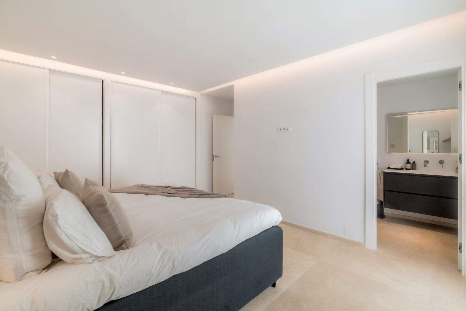 În întreaga interior, fiecare detaliu a fost luat în considerare, de la iluminatul dimabil încastrat și pendulele suspendate până la sistemele de difuzoare încorporate, controlul climatic zonal AirZone și încălzirea prin pardoseală. În spate, două dormitoare spațioase oferă confort și intimitate, fiecare dotat cu dulapuri duble și feronerie cu geam triplu. Suita principală dispune de o baie proprie, în timp ce dormitorul de oaspeți are propria baie dedicată, ambele finisate cu accesorii elegante și moderne.