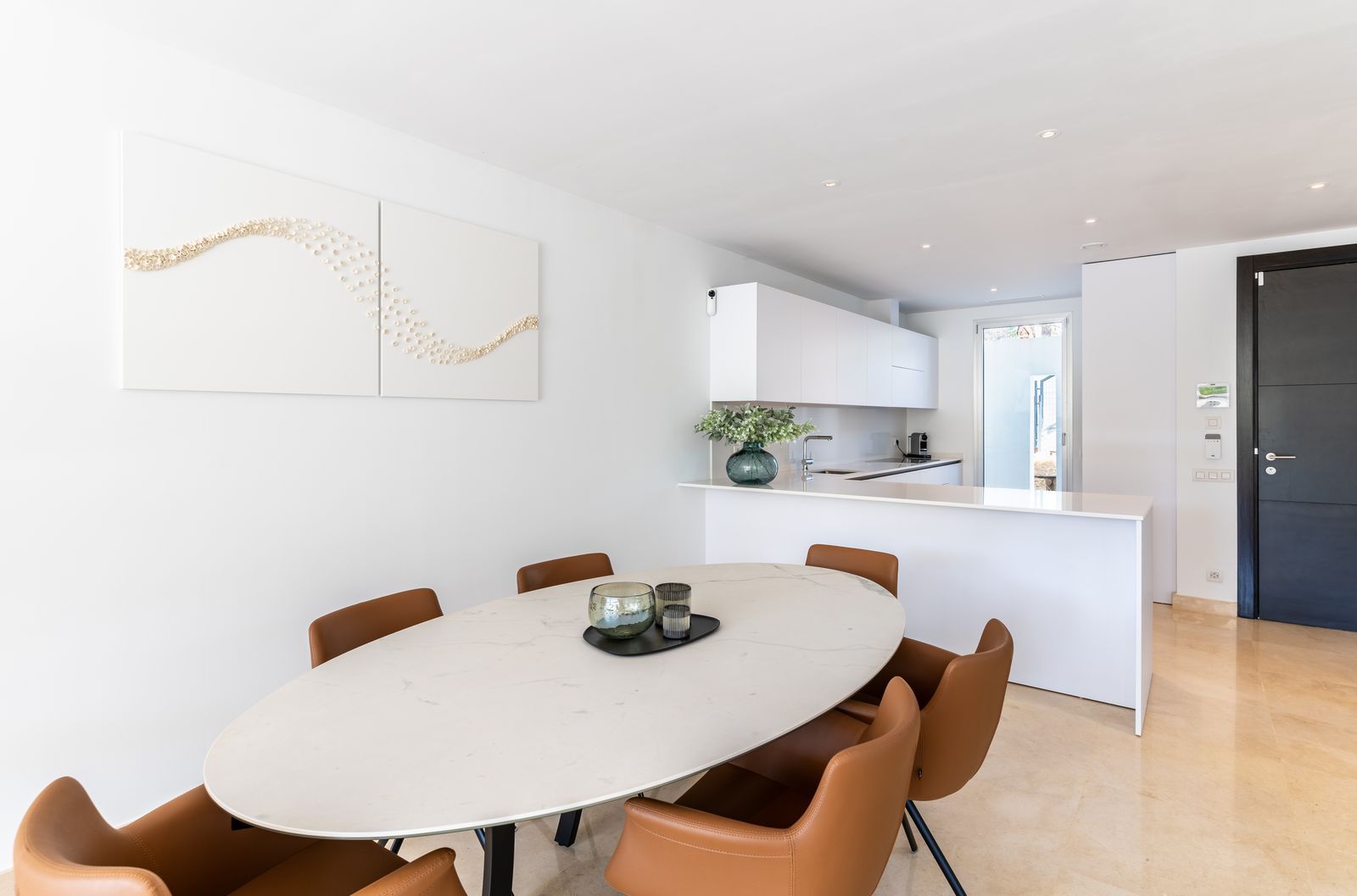 Casa de oraș beneficiază, de asemenea, de o terasă mare pe acoperiș, completată cu o piscină încălzită, zone mari de ședere și dining și se bucură de o frumoasă vedere la mare spre golfulețul Marbella și Gibraltar. Din zona piscinei, se poate bucura de un apus frumos în fiecare seară.