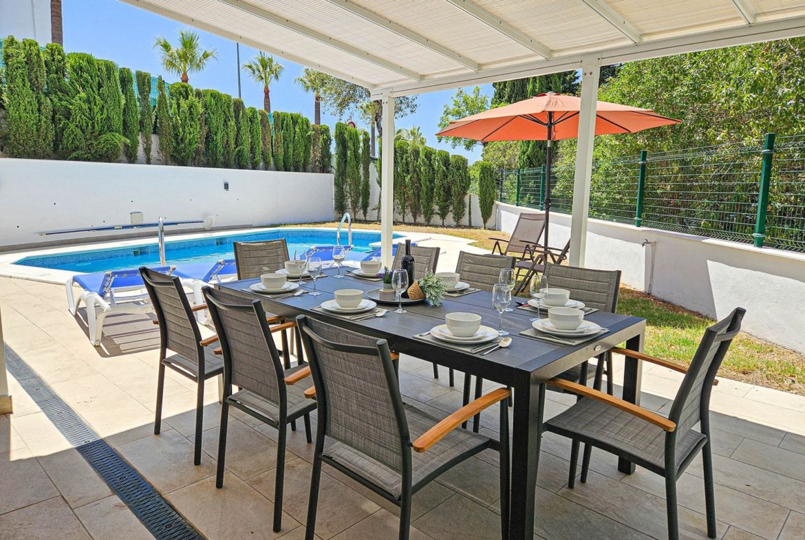 Vila de vânzare în, Mijas Costa cu 4 dormitoare, 3 băi, 1 toaletă și cu orientare sud, cu piscină privată, garaj privat și grădină privată. În ceea ce privește dimensiunile proprietății, are 352 m² construit și 775 m² teren. Are următoarele facilități: amenajări în apropiere, transport în apropiere, aer condiționat, complet mobilată, bucătărie complet utilată, șemineu, grătar, toaletă pentru oaspeți, terasă privată, living, vedere la mare, obloane de securitate, sistem de casă inteligentă, spălătorie, internet – wi-fi, terasă acoperită, dulapuri încorporate, vedere la grădină, vedere la stradă, aproape de mare / plajă, aproape de golf, bucătărie deschisă, balcon, stare bună, aproape de magazine, aproape de oraș și aproape de școli.