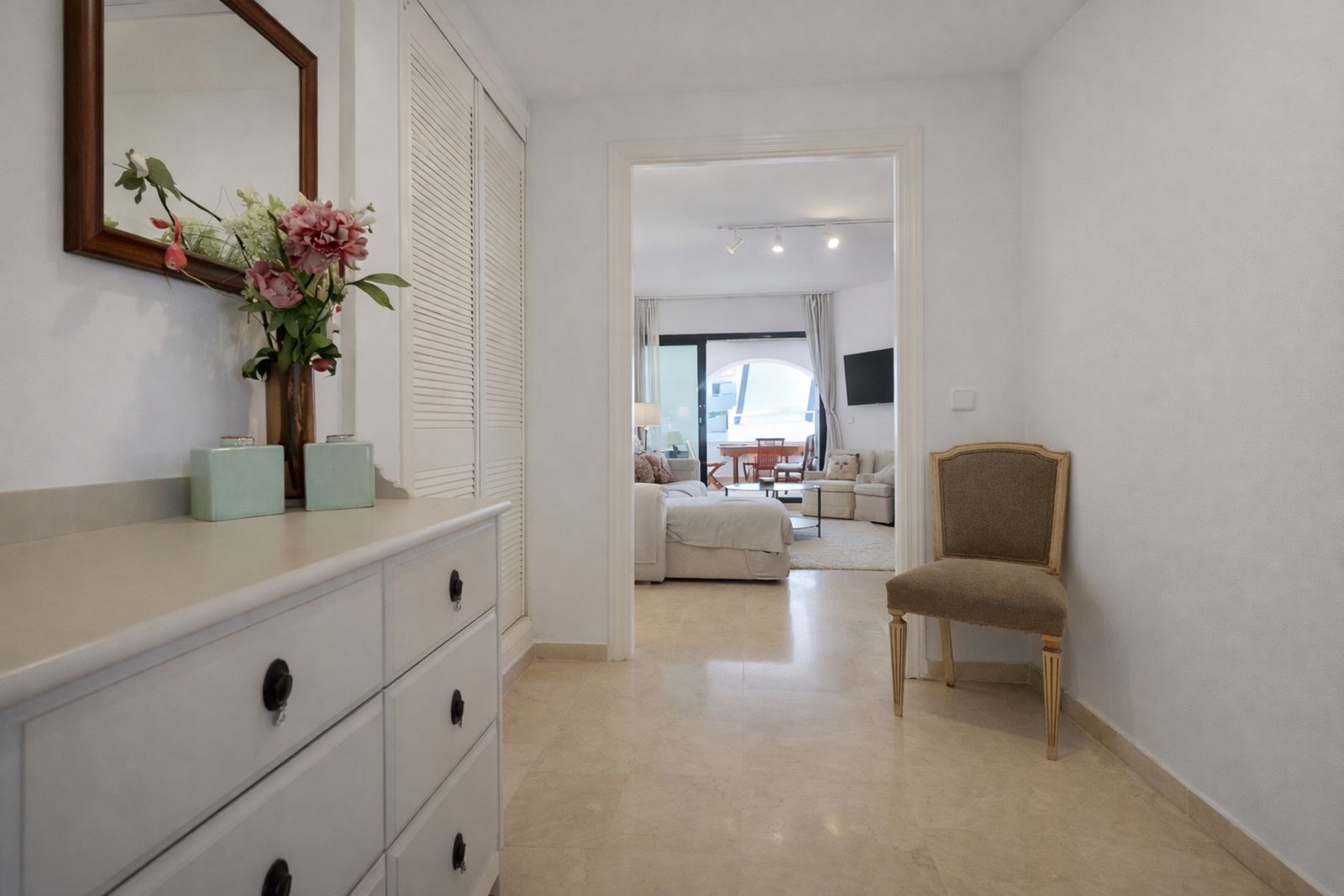 Just 100m from San Pedro Beach, this 3 bed, 3 bathroom apartment, is south west facing with incredible sea views so you can enjoy the Spanish sun all day long. After entering this fully furnished property through a large and welcoming hallway, with guest toilet, you are greeted with a spacious lounge that leads straight onto the stand out feature of the apartment – a large covered terrace, with uninterrupted sea views, perfect for your morning coffee or sunset drink!