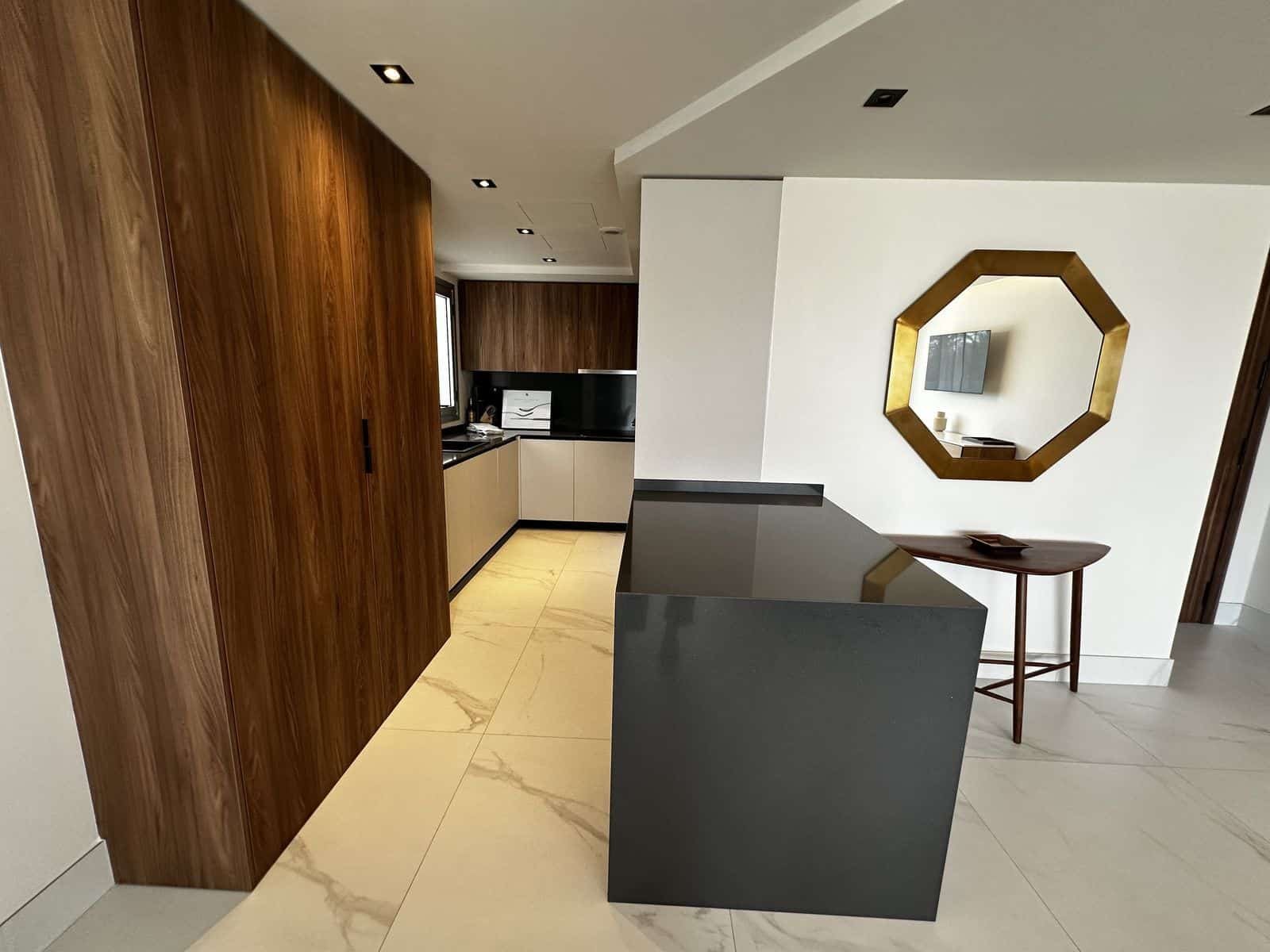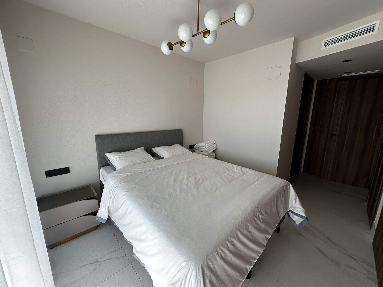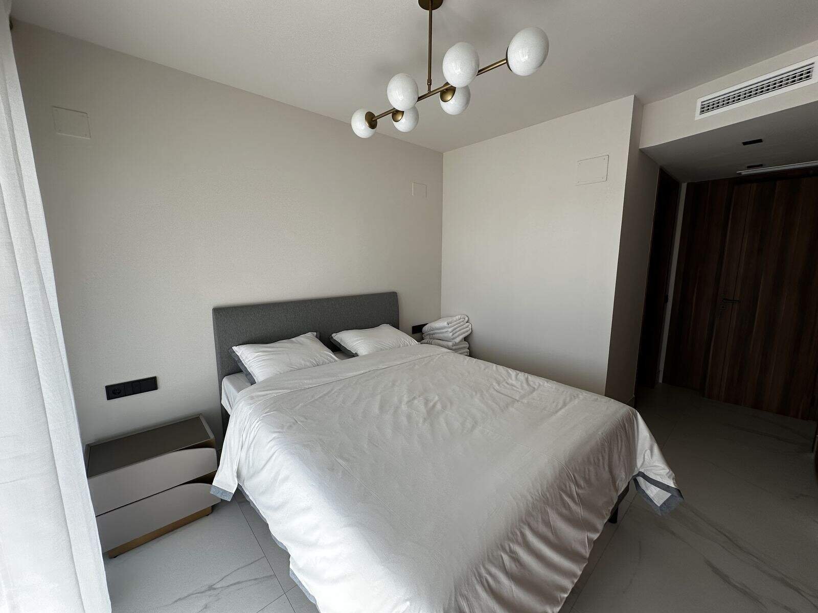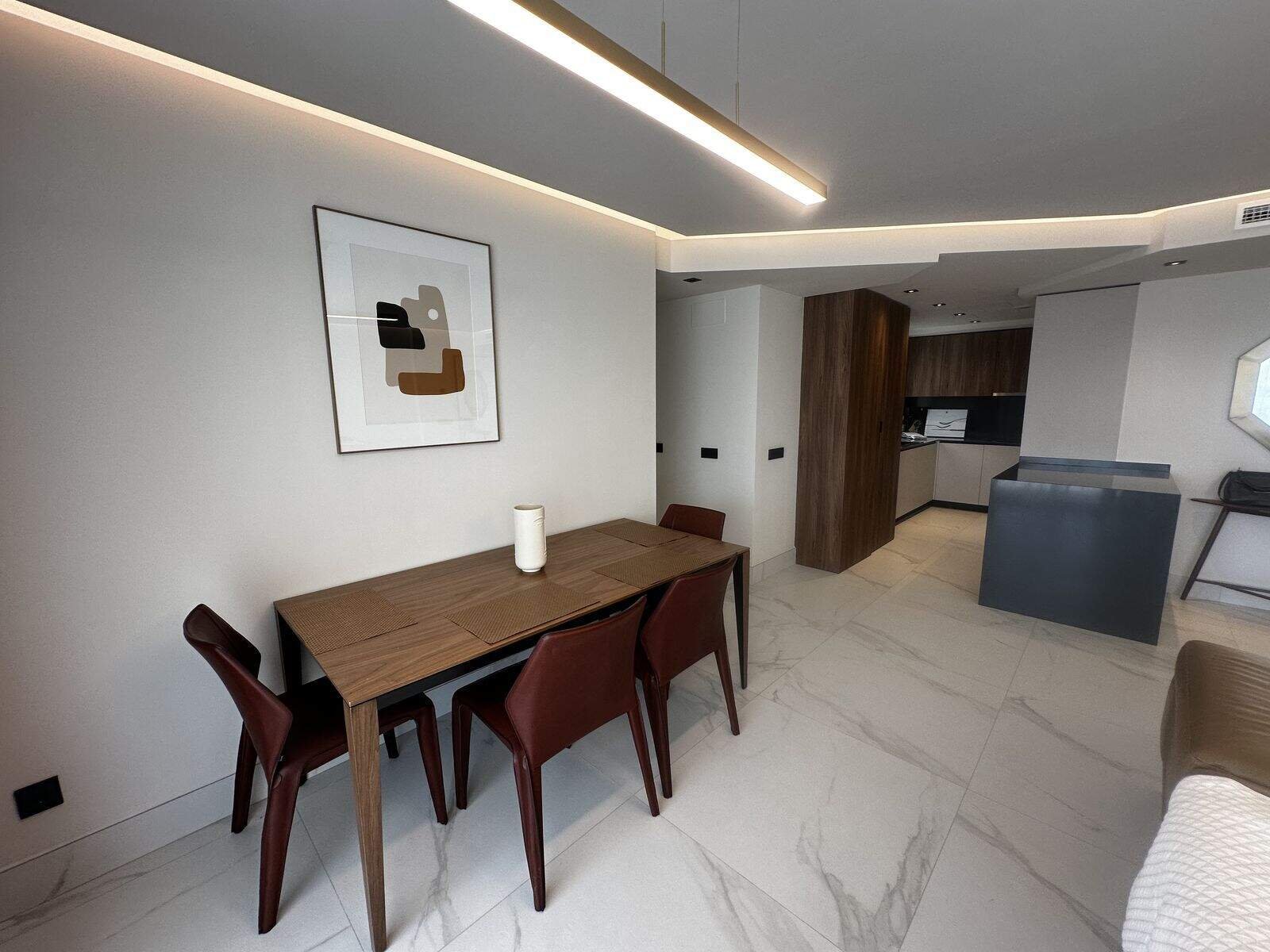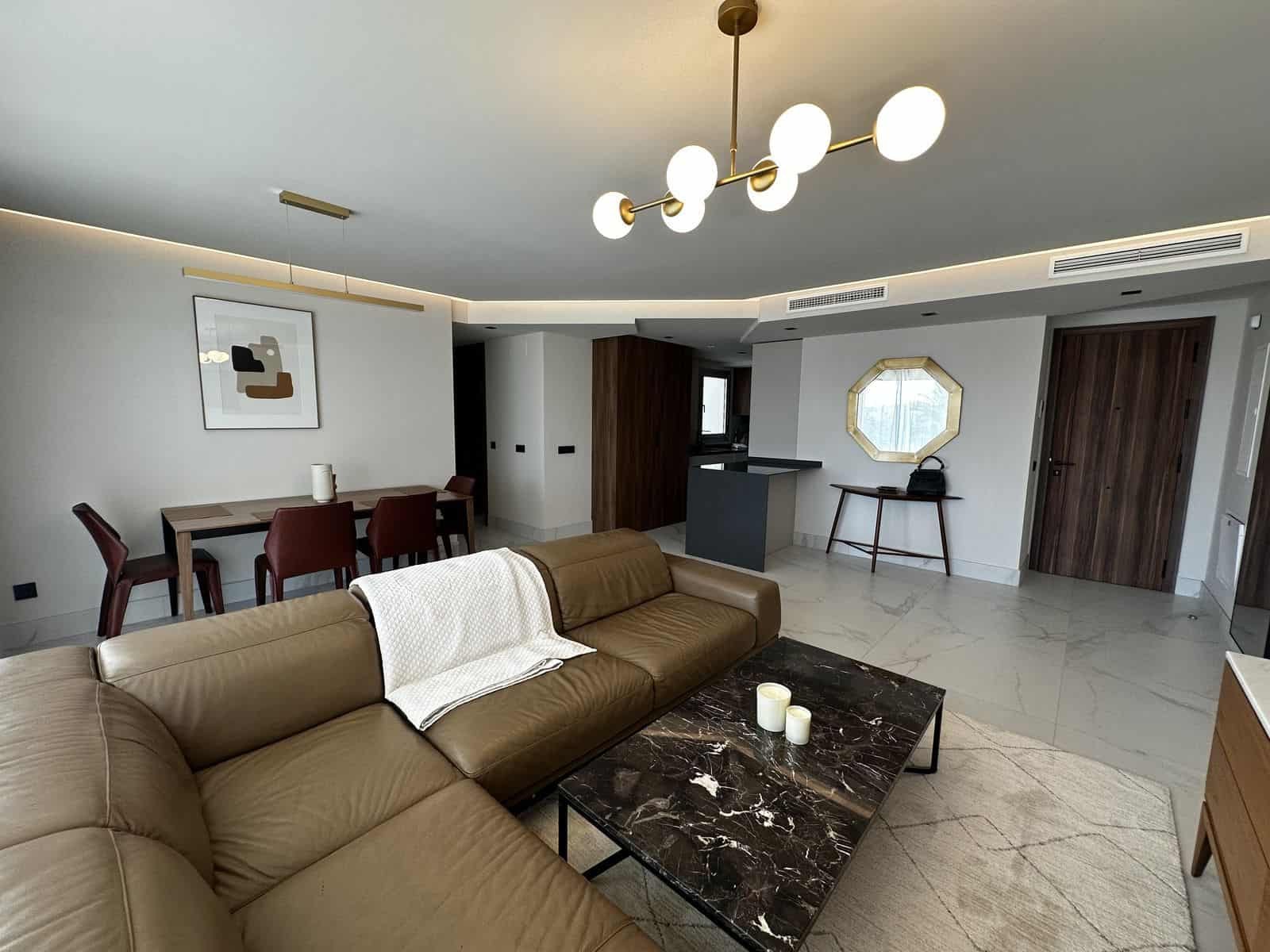 Apartamentul este oferit complet mobilat și în stare nouă. Dispune de un living și o zonă de dining deschisă și luminoasă, o bucătărie modernă complet echipată cu aparate de înaltă calitate și o terasă închisă spațioasă, perfectă pentru a te bucura de clima mediteraneană pe tot parcursul anului.