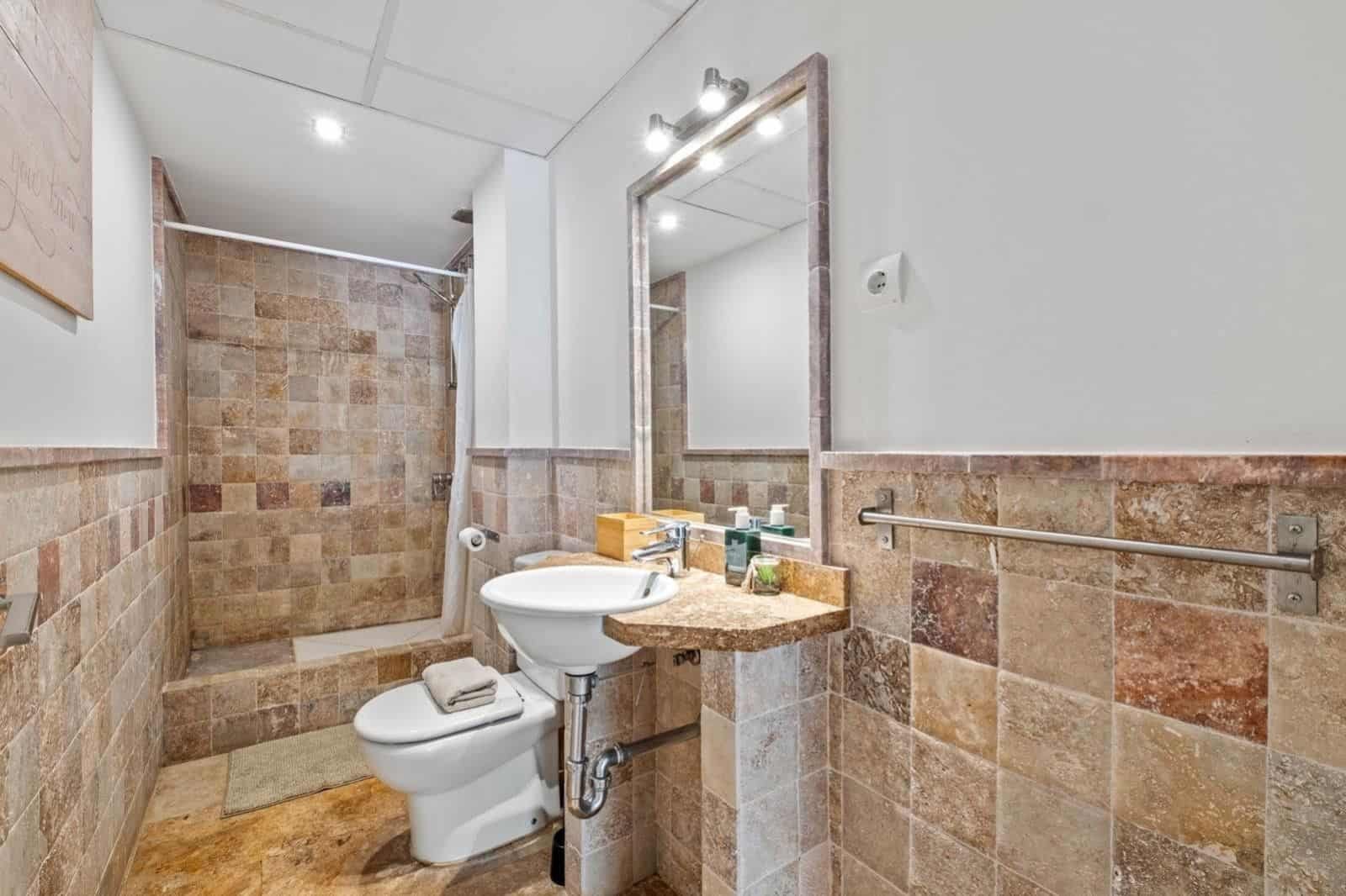 Apartament spațios la parter cu 184 mp. construiți și 70 mp. terase, în stil mediteranean clasic, cu atât eleganță, cât și confort. Se află într-o locație excelentă, aproape de mare și plajă. Acest lucru îl face o alegere bună pentru persoanele care iubesc coastă. Apartamentul are trei dormitoare mari, două dintre ele cu baie proprie și o a treia baie cu toaletă pentru oaspeți. Toate băile au încălzire prin pardoseală.