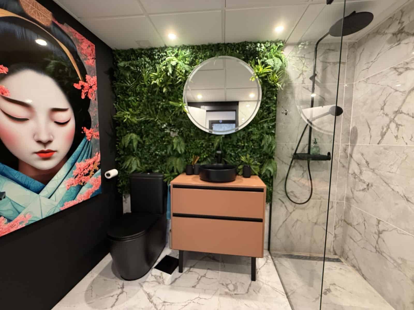Apartamentul dispune de 3 dormitoare, 2 băi, o bucătărie și un living, plus 2 terase.