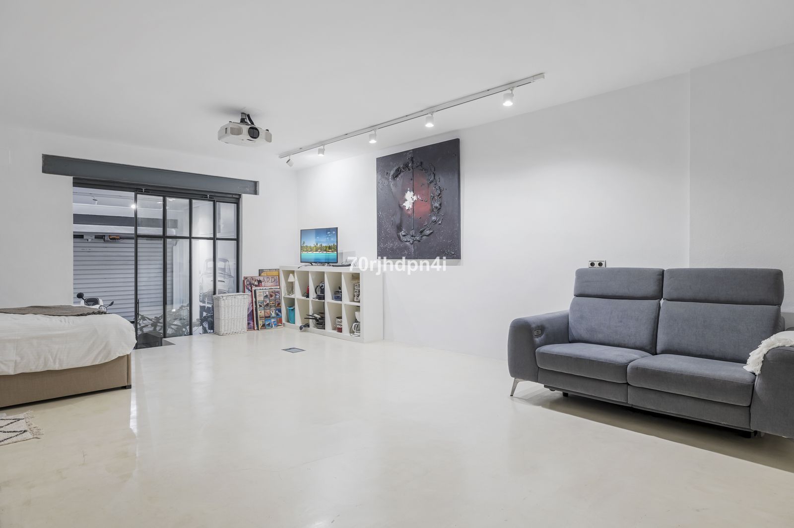 A loft-style cinema and lounge area