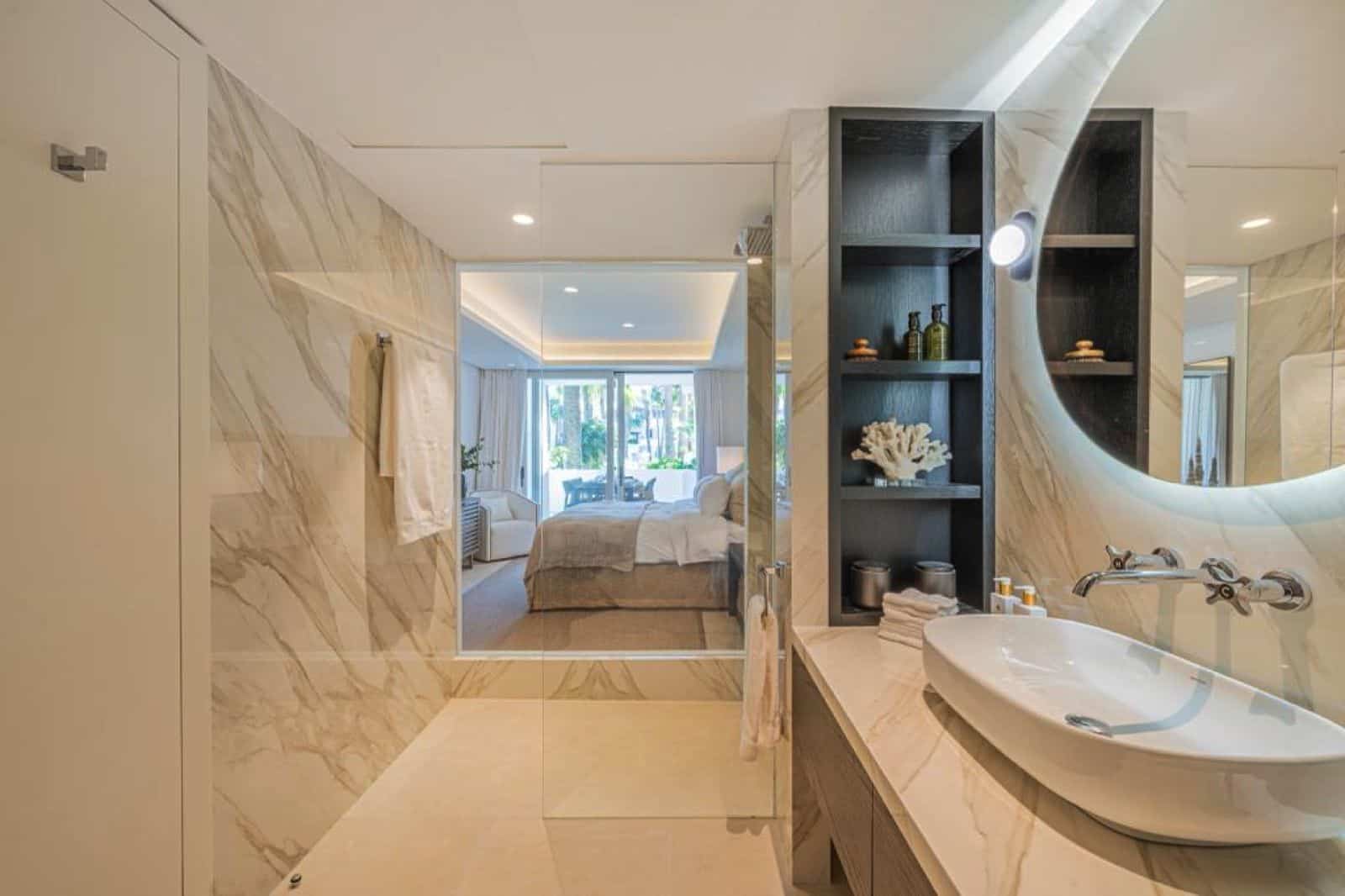 Situat în cadrul exclusivistului resort de 5 stele Puente Romano, în inima Milei de Aur din Marbella, acest apartament unic dispune de interioare personalizate, combinate cu cele mai înalte standarde de calitate. Viață interioară-exterioară fără efort, cu o terasă expansivă ce oferă vedere asupra magicului grădini japoneze și la doar câțiva pași de plajele de aur din Marbella. Proprietatea are o mare terasă orientată spre sud-est, cu acces direct la piscina comunală și plaja la doar câțiva pași distanță. Oferind un layout open plan, o bucătărie modernă, personalizată cu dulapuri din stejar și aparate integrate Gaggenau. Complet cu 3 dormitoare spațioase, fiecare având un design contemporan rafinat, dotat cu propriul său baie privată. Parcare privată și cameră de depozitare incluse.