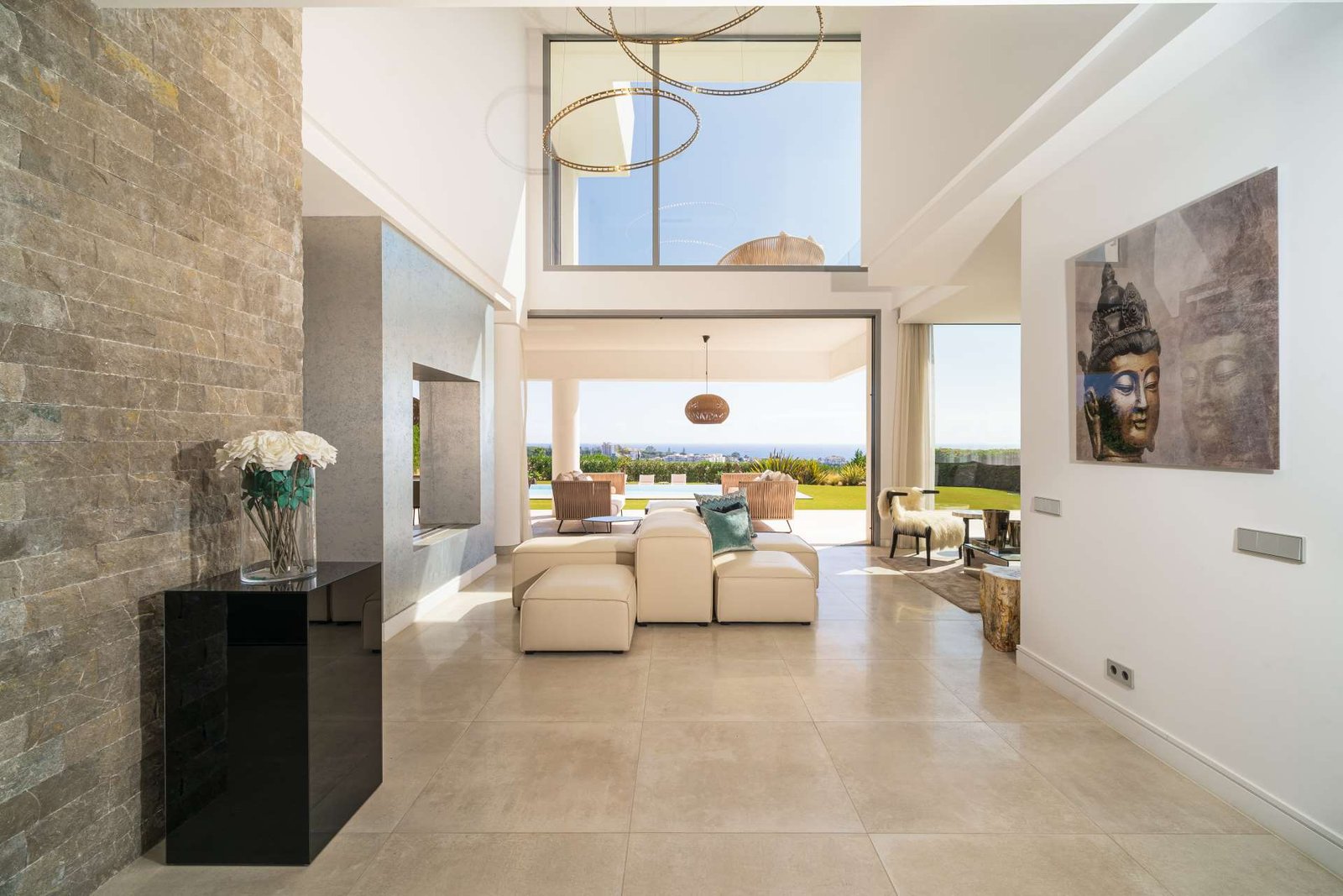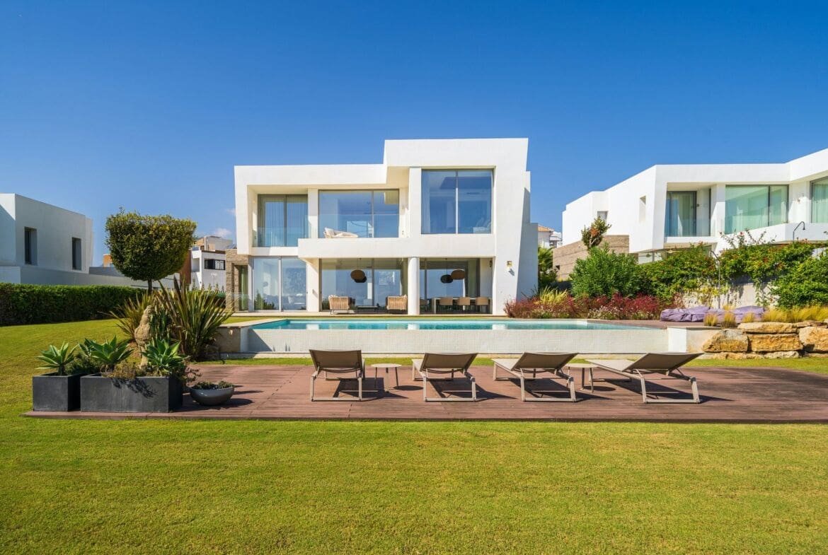Locație de top: Situată pe un teren spațios de peste 1.100 de metri pătrați, această vilă se bucură de o locație privilegiată cu vederi impresionante la mare și la terenul de golf Santa Clara, adăugând o notă de rafinament întregului ansamblu.
