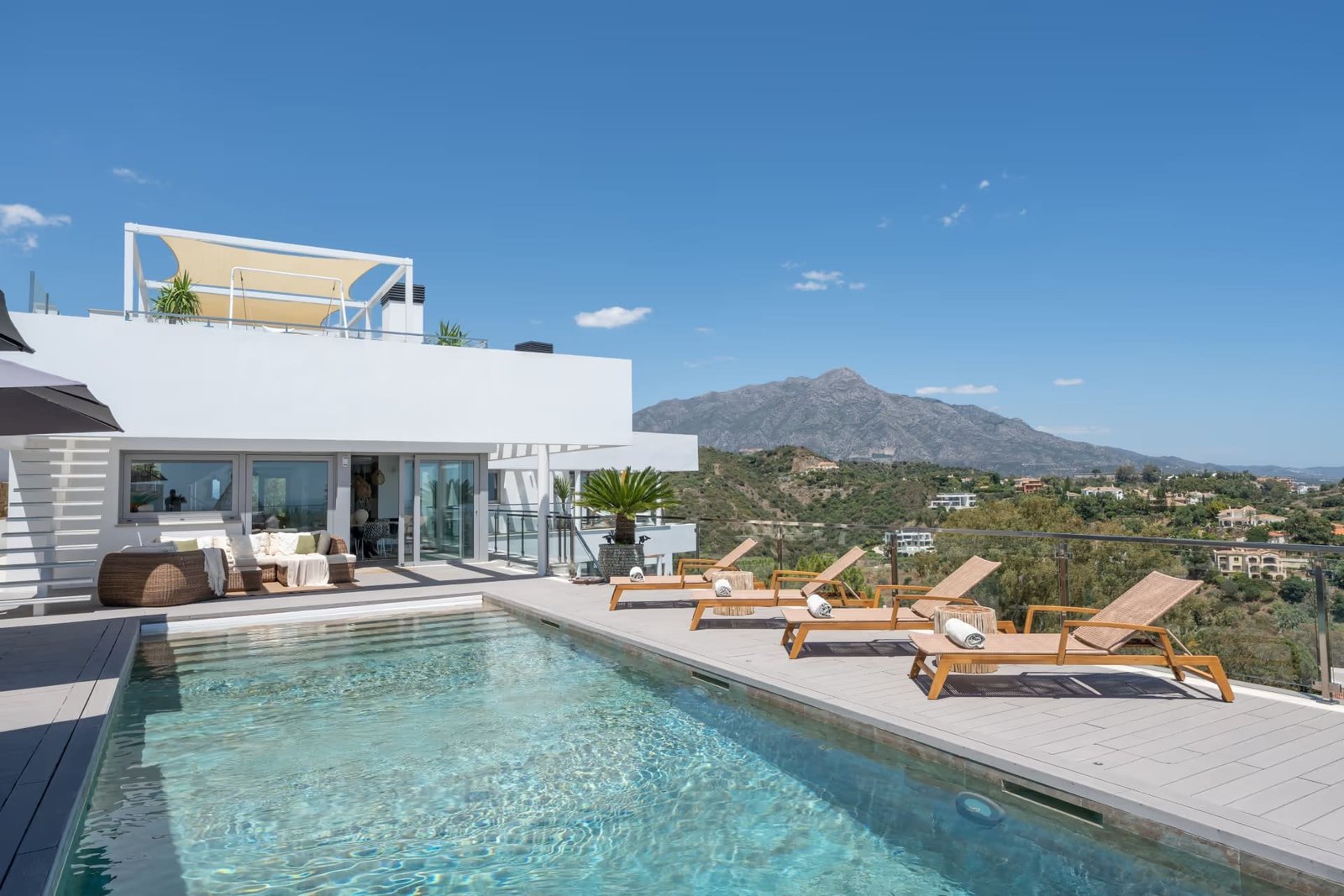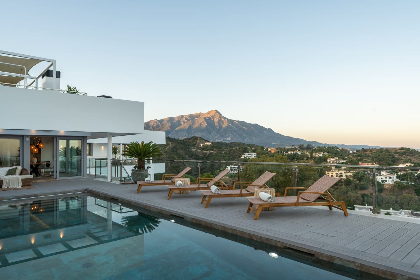 Această elegantă vilă este amplasată într-o zonă rezidențială frumoasă și liniștită din jurul clubului de golf La Quinta, la doar 10 minute de Marea Mediterană pe Costa del Sol.